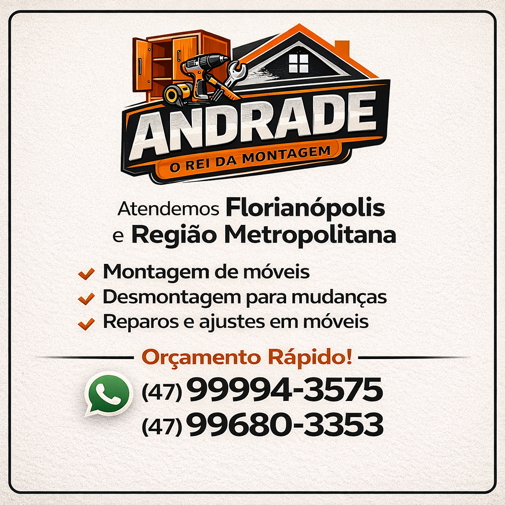 A Andrade Montagem de Móveis é especializada em montagem, desmontagem e reparos de móveis, oferecendo um serviço rápido, seguro e com acabamento profissional para quem busca praticidade no dia a dia.