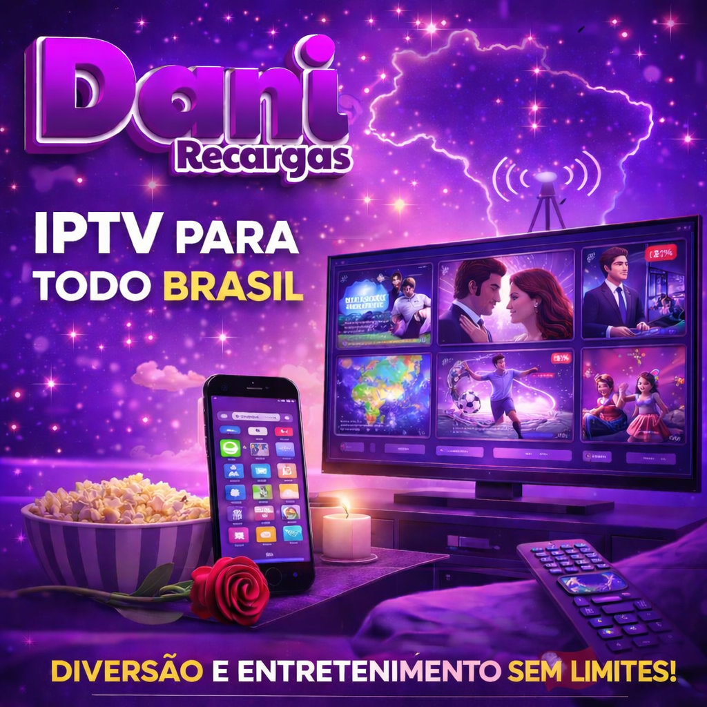 A Dani Recargas IPTV entrega variedade de conteúdo, acesso rápido e suporte para você assistir sem complicação, quando e onde quiser. Chame no WhatsApp agora e solicite seu acesso.